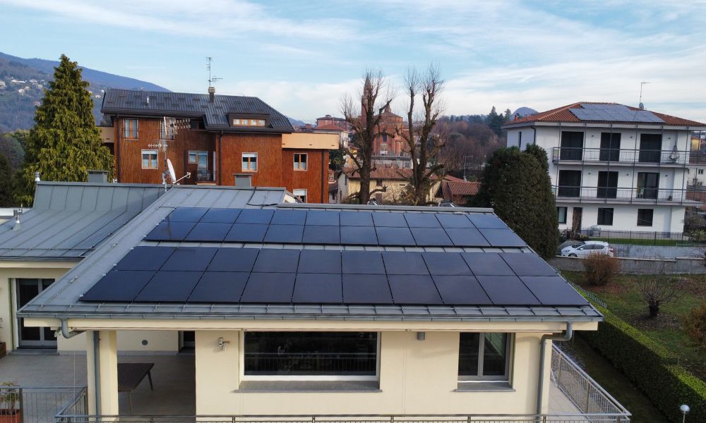 Tutti i moduli utilizzati sono full black ad alta efficienza, installati in modo perfettamente riquadrato per un risultato visivamente pulito e architettonicamente coerente con il contesto.