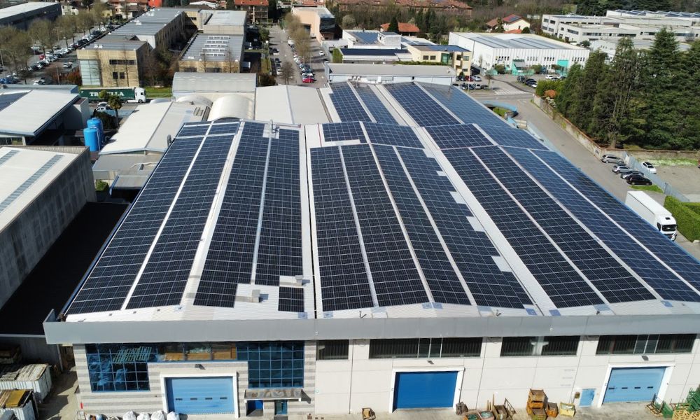 A Seregno, è stato progettato e realizzato un impianto fotovoltaico industriale da 970 kWp, installato su copertura in lamiera grecata a multifalda, con doppia inclinazione e geometria articolata.