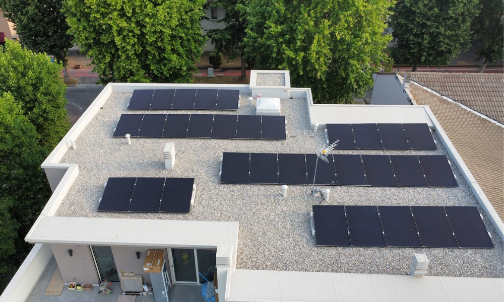 A Como, è stato realizzato un impianto fotovoltaico residenziale su tetto piano con guaina impermeabilizzante e ghiaia, con una configurazione studiata per preservare l’integrità della copertura e garantire al tempo stesso elevate prestazioni energetiche.