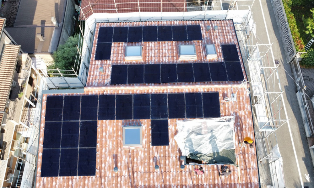 A Giussano, è stato realizzato un impianto fotovoltaico complesso, installato su copertura in tegole a quattro falde, con presenza di numerosi ostacoli (camini, lucernari, antenne). L’intervento ha richiesto una progettazione accurata e soluzioni tecniche avanzate, al fine di massimizzare la resa in condizioni architettoniche non ideali.